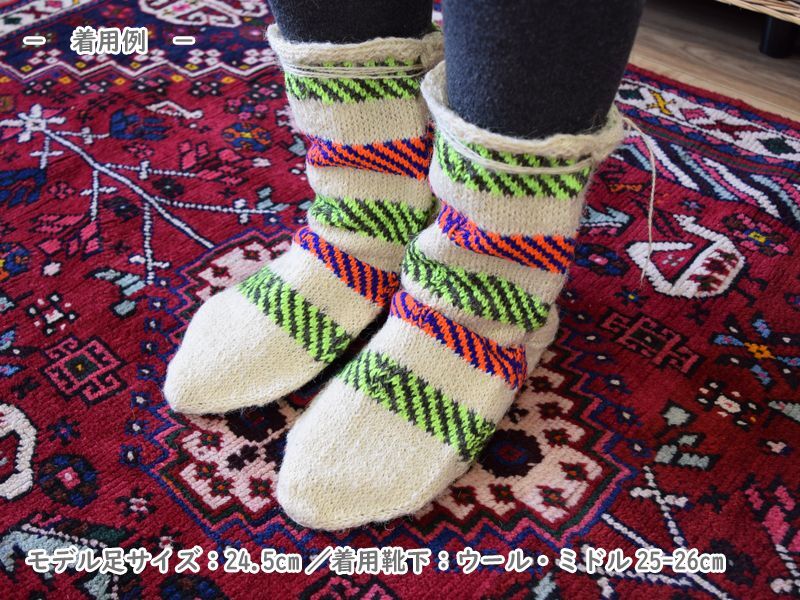 新品 イラン製 ウール ミドル 25-26 cm 手編み靴下 ニットルームソックス Long Knit Room Socks n-wm2526-2h4a5