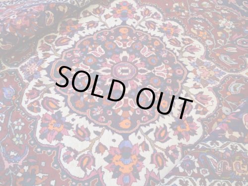 暮らしの中で年月と共に深まる風合いをお楽しみください。 *** ペルシャ絨毯には毛の流れがあり、一方向に羊毛が若干”ねている”様になっています。 大きなサイズのペルシャ絨毯になりますと、毛の流れに光が反射して、光の当たる方向によって、見え方も若干変化してまいります。 日光と共に表情を変える天然ウールの絨毯の毛並みを楽しめるのも大きなサイズならではです。