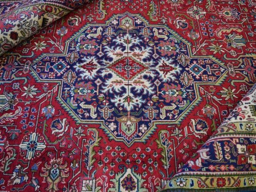 暮らしの中で年月と共に深まる風合いをお楽しみください。 *** ペルシャ絨毯には毛の流れがあり、一方向に羊毛が若干”ねている”様になっています。 大きなサイズのペルシャ絨毯になりますと、毛の流れに光が反射して、光の当たる方向によって、見え方も若干変化してまいります。 日光と共に表情を変える天然ウールの絨毯の毛並みを楽しめるのも大きなサイズならではです。