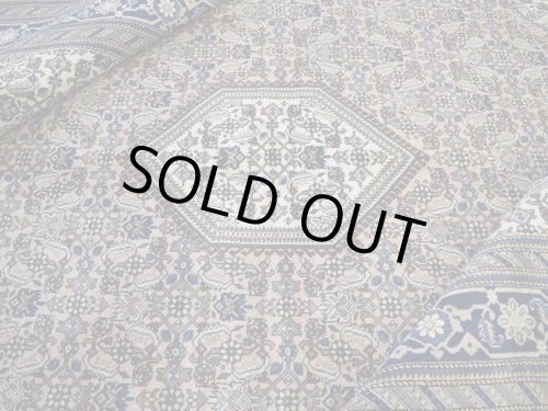 【見た目に、、、】 みっしりと詰まって立ち上がった豊富な毛足が肉感があります。 毛足は経年により、味わい深い色合いの変化をしています。均等に整った毛足は、近めにマットな見た目、遠目にはツヤ感を感じます。 ウールに染色された元々の色合いに、毛流れの方向にぺたりと寝た毛足や、毛足のツヤ感等の経年の影響も合わさって美しい表情の変化を見せます。 絨毯のフィールドは見た目にも柔らかで良質なウールが使用され、経年の味わいも合わさってマイルドな色合いでまろやかな印象を与えます。 短く整えられた、1本1本がふわふわとした柔らかな毛足はきめ細かで、しっかりとした織り地のベースに携えられたふわふわとした毛足はぺたりと毛流れの方向に寝ています。 近めにはマットな見た目、遠目にツヤ感の感じる毛足で、角度によってクリーミーな色合いから光が反射して輝くような色合いへと印象を変えます。 -------- 【触り心地は、、、】 毛足を面で触るとしっかりとコットンに織られた毛足のしっかりとした織り地ベースの上にやわらかな毛足が詰まったほんのりとした低反発感のある弾力を感じます。ふかふか感は少ないですが、コシのある弾力があります。 みっしりと詰まったウール毛足が毛流れの方向にやや寝て、なでるとさらりとした手触りです。 毛足は寝ていますが、1本1本がふわふわとしたきめ細かな毛足で、足裏に包み込まれるような安心感ある優しいウールの感触が床面の感触と共に伝わってきます。 約1.5cm程度の毛足は絨毯全体の毛足は、1本1本のやわらかな毛足がみっしりと密集して、きめ細かです。 コットンの縦糸にしっかりと織られた織地にみっしりと毛足が並び、センターテーブル等を置いても非常に安定するしっかりとした織り地です。 がっしりとして簡単に捲れることのないしっかりとしたベースの織り地です。