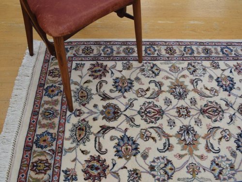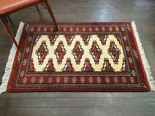 暮らしの中で年月と共に深まる風合いをお楽しみください。 -------- 【サイズ感は、、、】 約90×60cmのサイズ感は、玄関マットとして最適なサイズです。 玄関マットやチェアマット、勝手口や姿見の足元等に幅広く使えるサイズです。 子供部屋のアクセントやファンヒーターストーブの前に敷くのもおススメです。 寝室ではベッドサイドの足元に敷くことで、1日の始まり、1日の終わりを特別な気持ちで過ごすことが出来ます。 オーディオに囲まれた音楽部屋や書斎、趣味の空間にもいいですね。 気分や季節によってポジションチェンジも気軽です。 手織りウールは冬あたたかく、夏はさらりとした質感で通年敷いていただけます。 天然ウールのやさしさをたっぷり楽しめる贅沢なサイズです。 良いラグはあなたの空間を特別なものに変えてくれます。 *** ペルシャ絨毯には毛の流れがあり、一方向に羊毛が若干”ねている”様になっています。 大きなサイズのペルシャ絨毯になりますと、毛の流れに光が反射して、光の当たる方向によって、見え方も若干変化してまいります。 日光と共に表情を変える天然ウールの絨毯の毛並みを楽しめるのも大きなサイズならではです。 *** お部屋のアクセントとして、または玄関マットにも使えるサイズです。 ベットサイド、椅子やソファーの足元にもおススメです。 あたたかみのあるハンドメイドの絨毯が、床に絵を飾っている様に、毎日過ごすお部屋を素敵な空間にしてくれます。 あなたのお部屋のアクセントにどうぞ。