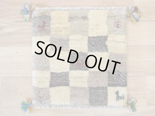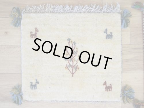 新品 ペルシャ ギャッベ No.2548 - 42 × 42 cm 座布団 クッションサイズ ラグ チェアマット 肉厚 天然 ウール ギャベ 手織り ロルバフト ハンドメイド ラグ 絨毯 カーペット 動物 柄 生成り クリーム ベージュ 白 ホワイト系 ライトグレー 原毛系 n-2548-042042s320a030