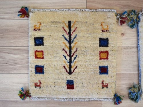 *** 羊毛は呼吸しています。 ギャッベは寒暖の差が激しいザグロス山脈の麓にあるシラーズでカシュガイ族が伝統的に使ってきた敷物です。 羊毛の1本1本が呼吸し、冬あたたかく夏はしっとり。夏でも快適に過ごせます。 厚みのわりに通気性があり、床暖房やホットカーペットの上に敷いても、ほんわかと心地よい暖かさが伝わってきます。 | | サイズ | 【縦】42cm × 【横】42cm※フリンジ(房)の長さは含みません。(フリンジ上2下2cm程度) 【厚み】約2.0cm程度 【ノット】二重織り(ダブルノット) ロルバフト ※画像ソファサイズ:横幅180cm程度 | | 手触り | ソフト、面で触るともちもちとした低反発感ある弾力、腰を下ろすとコシのあるやわらかな弾力の毛足の感触、厚い毛足は見た目にも肉厚、毛足の流れに沿ってなでるとふかふかとした毛足の柔らかな感触、安定感あるしっかりとした織り地のベース、近くに見るとマットな質感の毛足 | | 素材 | 〇パイル:WOOLウール(羊毛) 〇フリンジ(房):ウール | | 状態 | 【NEW】新品未使用品 ペルシャ絨毯の本場イランより直輸入したお品物です。 ハンドメイドの商品ですので、多少のゆがみや大きさの違い、色滲みムラやスレ毛羽立ちほつれなどはご理解いただきます様お願いします。 ご利用のモニター環境によって色合いや見え方は異なります。ご了承下さいませ。 | | コンディション詳細 | ー | | 備考 | ※お部屋に敷いてからしばらくの間は、遊び毛と呼ばれる抜け毛が出てまいりますが、品質に問題はございませんのでご安心くださいませ。 数か月程度で落ち着いてまいります。※個体差があります。 ※ラグを保管・発送する際は、折り畳まれた状態、若しくはロール状態とさせていただいております。 折り畳まれた状態の場合、ラグにシワがつく場合がございます。 また、ロール状態の場合は丸まった状態のクセがつく場合がございます。 ラグを敷いて1数週間〜数か月ほどでシワ・クセは取れてまいります。(季節・商品の状態により期間は異なります) | | お手入れについて | ★普段のお手入れは、丁寧に掃除機をかけてホコリをとって下さい。 また、時々は絨毯を敷いている床面もお掃除してください。