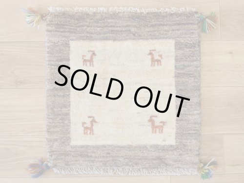 新品 ペルシャ ギャッベ No.2579 - 41 × 43 cm 座布団 クッションサイズ ラグ チェアマット 肉厚 天然 ウール ギャベ 手織り ロルバフト ハンドメイド ラグ 絨毯 カーペット 動物 柄 生成り クリーム ベージュ 白 ホワイト系 ライトグレー 原毛系 n-2579-041043s320a030