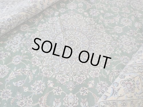 イラン・ナインで作られた6la(シシラー)規格の細かな織りの新品未使用・ペルシャ絨毯です。 使用されたウールは、柔らかなウールを使用し、ふんだんにシルク糸で装飾がなされています。 絨毯中央のメダリオンを中心に同心円状に広がるゴンバッド模様が非常に美しい1枚です。 ナイン産絨毯らしい白やベージュ等の白系の色合いをベースに、孔雀の羽の様に広がる模様は深いエンジの色合いで配色され、細かな織ならではのゴンバディ模様のデザインをより美しく際立たせています。 薄手ながらもみっしりとキメ細かく詰まった良質なウール、シルク糸で織りあげた高品質な絨毯です。 -------- 【見た目に、、、】 絨毯中央から放射状に広がるゴンバット模様に映える深いエンジをおもわせる赤の色合いが、ナインならではの淡い白系の色合いやシルク糸の装飾、デザインとを際立たせてくれる、とても美しい1枚です。 同心円状に広がるデザインは、孔雀の羽の様に整然と並び、浮き上がってくる様な印象を与えます。 ナインならではの淡いブルー、生成りやベージュの色合いをベースに均一に並んだウールの毛足が美しいデザインをより一層際立てています。 新品ならではの光沢感の少ないマットな毛足と、薄手ながらも密に詰まった毛足のみっしりとした肉感で、面で触ると柔らかな毛足のもちもちとした低反発感ある弾力を感じる織り地です。 柔らかな肉感と共に床面の感触が身体に伝わり、包み込まれるような安心感ある優しい感触を味わえます。 毛足に沿って撫でるとさらりとした感触とふわりとした豊富で密集した毛足の感触を味わうことが出来ます。 柔らかな触り心地はウールに包み込まれるようでとても安心感を与えてくれます。 ウールパイルの1本1本がふわふわとしたきめ細かな毛足で立ち上がりの良い毛足の状態です。 キメの細かい織の為、豊富なウールでも持ち上げるとくにゃりとする柔らかな毛足です。 近めに見るとマットな質感、遠目に見るとツヤ感を感じる毛足です。 -------- 【触り心地は、、、】 6laシシラー規格のキメ細かな織で、しっかりと密に織られた高品質な毛足です。 一般的に流通している9laは、 縦糸を9本より合わせたもの、6laは経糸6本をより合わせたものを呼び、6laシシラーはより細かく繊細な織の規格となります。 柔らかなウールで織られた手触りは、面で触ると薄手ながらも、もちもちとした低反発感ある弾力を感じる肉厚な織り地です。しっかりとした織り地で、歩いたり、腰を下ろした際には柔らかな弾力とウールの厚みを感じさせ弾力あるやわらかな毛足の感触が伝ってきます。床面の感触は少ないです。 毛足に沿って撫でると吸い付く様にサラリとしてふわりとした毛足の肉感も感じることが出来ます。 1本1本がきめ細かくやわらかな毛足は非常に良質で、ふかふかとしています。 みっしりと密に詰まった織り地は、そのきめ細かな織から、持ち上げるとくにゃりとする柔らかさです。 とてもきめ細かな毛足が密集して並んで、とても柔らかな感触を与えます。 -------- 【詳細は、、、】 6la(シシラー)規格の良質なナイン絨毯です。 一般に日本流通する規格の9laノーラー規格よりも細かな織の高品質なクオリティです。 柔らかく上質なウールを使用して織りあげられた絨毯です。 キメ細かく柔らかなウールで緻密な織りによるデザインを際立たせ、肉感ある柔らかな手触りです。 絨毯のゴンバッド模様の縁取りや花模様等にふんだんにシルク糸を使用しています。うねる様なゴンバッド模様の縁取りやボーダーにはふんだんにシルク糸が使用されて織られています。 ウールのツヤ感とも違う白く反射して輝く様な美しさです。 シルク糸は時と共にウールとは違った経年の風合いを帯びていきます。 シルク装飾箇所は一部やや硬さがありますが、使用していくうちにほぐれてまいります。 暮らしの営みの中でお楽しみ下さい。 柔らかく良質なウールを使用して緻密な模様を織りあげられた絨毯です。 薄手ながらもキメ細かく密に織られた肉厚な毛足の立ち上がりもよく美しさが際立ちます。 王道のデザインに全体の淡くクリーミーなウールの色合いが非常に美しく上品です。 絨毯全体の毛足は、1本1本のやわらかな毛足がみっしりと密集してきめ細かで、緻密な織のデザインを際立たせています。 約0.7cm程度の毛足はみっしりと詰まってキメ細かく均一に立ち上がり、見た目にもやわらかな肉感を感じる均一な立ち上がりの毛足です。 キメ細かなコットンの経糸にしっかりと織られた織地は、安定して滑りにくいです。 美しい色合いやもちもちとした柔らかなウールの良質さが際立ちます。 -------- 【サイズ感は、、、】 200x200cm程度の正方形スクエアサイズタイプです。 ソファとTVの間等、リビングルームに敷くのにぴったりのサイズです。 2〜3人掛けのソファーの前に敷いて、ローテーブルを置くことの出来るサイズです。 ソファーの前に座って皆で団らんが出来