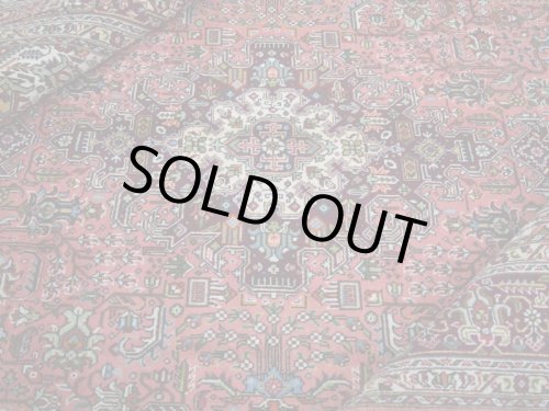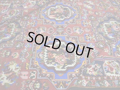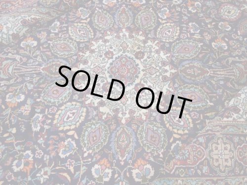 【状態詳細は、、、】 柔らかく上質なウールを使用して織りあげられた絨毯です。 経年20-30年〜程度のヴィンテージのお品ですが、状態の良い毛足で均一な毛足の立ち上がりもよく手触りの良さ、色合いの美しさが際立ちます。表地のウール毛足は、毛足表面はやや退色をした色合いの印象ですが、ウール毛足は豊富で肉感があります。中古品に抵抗がある方にもお勧めできる良品です。 柔らかなGoodコンディションの毛足でスレ等ダメージはなく、美しい色合いやふわふわとした柔らかなウールの良質さが際立ち、絨毯全体の印象を優しいものにしています。 フリンジも新品の様にメンテナンスがなされ気持ちよくお使いいただけます。 全体的な状態が良いGOODコンディションのヴィンテージ品で、大きなスレ等のダメージもなく、本場イランでのクリーニングを経て気持ちよくお使いいただけます。 -------- 【サイズ感は、、、】 約6.0㎡・〜6帖程度のサイズ感で、大判の絨毯はリビング・ダイニングルームや客室の中心に、3人掛けソファやコーナーソファの足元に敷いてお部屋をくつろぎの空間に変えてくれます。。。 ホテルや旅館、ペンション等の人の集まる場所にも最適な大きなサイズと上品な美しさです。 大きなサイズはホテルや旅館、ペンション等のお客様をおもてなしする場にも相応しい大きなサイズと良質な毛足、上品な美しさを兼ね備えた1枚です。 良いラグはあなたの空間を特別なものに変えてくれます。 -------- ***デザインやカラーリングについて*** ◆全体のデザイン◆ クム、イスファハーン、ナイン、タブリーズと並ぶペルシャ絨毯の5大生産地として知られているカシャーン産の絨毯は、全体に所狭しとアラベスク模様の花々が美しく咲き乱れるデザインが主流です。 職人気質なカシャーンならではの王道メダリオンコーナーデザインがデザインされています。 クラシックなデザインは様々なインテリアにマッチします。 絨毯の中央に大きなメダリオンを配し、全体に所狭しとアラベスク模様の花々が美しく咲き乱れるデザインで、ペルシャ絨毯でも主流のクラシックなデザインです。 こちらの絨毯は中央にメダリオンを配した『トランジ』デザインです。 中央にメダリオンをフィールドの四隅にコーナーメダリオンを配していることから『メダリオンコーナー』デザインとも呼ばれます。 バラやユリの断面をデザインしたシャーアッバス模様をあしらった、花や樹木を扱った花柄のアラベスク調の王道デザインです。 花柄の模様が美しい王道の落ち着いたデザインです。 全体の赤やネイビーの色合いと調和した美しいデザインが魅力的です。 ユリやダリヤの断面を描いたシャーアッバス模様の花々がきめ細かな毛足に美しく描かれています。 全体に細かな模様が配されていますが、落ち着いた配色、デザインのバランスが落ち着きを与えてくれる王道のデザインと言えます。 見ていて飽きの来ない、見ていると様々な発見のある素敵な絨毯です。 ◆全体のカラーリング◆ 絨毯全体に使用されたネイビーと落ち着きある赤の色合いがベースカラーとなっています。 赤やネイビー等、全体に色合いが統一して使用され、王道のデザインと合わさってとても落ち着いた印象です。 花々等の模様にもベースカラーの同系色が多用され、統一された色合いを使うことで絨毯全体にも統一感を与えています。 発色の良いクリアな色合いですが、キメ細かくやわらかなウールに染められた毛足の色合いは、経年の風合いある角の取れたマイルドな印象で、目に痛い色合いではない、まろやかな色合いです。 生成り色系の色合いは、ニジミ感のあるややくすんだ色合いで、経年の良い味わいを感じます。また、表地ウール毛足の表面がややムラ感のある退色をした色合いの印象ですが、ウール毛足は豊富で肉感のある密度です。 フィールドの赤系の色合いやメダリオン等に使用されたネイビー・青系の色合いをはじめ、経年の色合い変化を経てやや淡い色合いになっています。 経年による色ムラ感のある色合いの毛足に関しても、良好な状態の毛足です。カスレて毛足がなくなっている様な事はありません。 絨毯全体に配された花々や草木やメダリオン等の細かな装飾には黄やピンク、グリーン、オリーブ、ベージュ、グレー等の色合いが使用され、全体的にカラフルですが、統一された色合いを使用し絨毯に落ち着きを与えています。 キメ細かくふわりとした柔らかなウールにまろやかな色合いが染色され、そこに経年の色合い変化や引き締まりを見せた毛足が、やさしくクリーミーな色合いの印象を与えています。