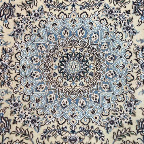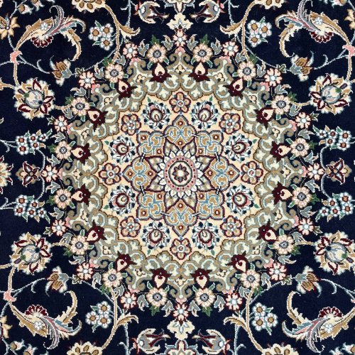 【見た目に、、、】 赤や、ネイビー、ややイエローがかったクリームの色合いをベースにしたウール毛足は経年を経てまろやかで優しい印象です。 薄手ながらも見た目にも肉感のある毛足の立ち上がりです。 毛流れの方向にぺたりと寝た毛足が並び、細かな模様を美しく際立てています。 センターテーブル等を置いても安定するやわらかな織り地です。 近めにはマットな見た目、遠目にツヤ感の感じる毛足で、角度によってクリーミーな色合いから光が反射して輝くような色合いへと印象を変えます。 -------- 【触り心地は、、、】 持ち上げると毛足の肉感を感じる織り地で、くにゃりとする柔らかさです。 やや毛流れの方向に寝たふわりとした毛足を携えてコシのある柔らかな肉感があります。 面で触ると詰まった毛足のコシのある弾力を感じる織り地です。 歩いたり腰を下ろした際には、柔らかなウールに包まれる様な優しい感触が味わえます。 毛足に沿って撫でるとふわりとしたウールの感触です。 柔らかな触り心地はウールに包み込まれるようでとても安心感を与えてくれます。 ウールパイルの1本1本がふわふわとして、それらがみっしりと並んで互いを支え合うきめ細かな毛足で立ち上がりの良い毛足の状態です。 柔らかな肉感と共に床面の感触が身体に伝わり、包み込まれるような安心感ある優しい感触を味わえます。 -------- 【状態詳細は、、、】 ウール手織りの絨毯です。 柔らかく良質なウールを使用して緻密な模様を織りあげられた絨毯です。 深く落ち着いた色合いから白く反射する様に変化するフィールドの色合いの美しさが際立ちます。 絨毯全体の毛足は、1本1本のやわらかな毛足がやや毛羽立つ様にゆるやかにと密集しています。 約1cm程度の肉感ある毛足は表面にやや毛羽立ち感があり、見た目にも肉感を感じる均一な立ち上がりの毛足です。 経年の影響でムラ感のある変化を見せる色合いも、色合いはカスレ感がありますが、実際の毛足にスレ等のダメージは見受けられません。 柔らかな良品状態の毛足で、大きなダメージはなく、美しい色合いやふわふわとした柔らかなウールの良質さが際立ち、絨毯全体の印象を優しいものにしています。 本場イランでのクリーニングを経て気持ちよくお使いいただけます。 --------