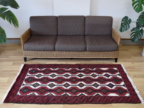 新品未使用でウール手織りのイラン・ヤラメの部族絨毯(トライバルラグ)です。 安定感のあるしっかりと織られた織地に、コシのある毛足が並ぶ良質な1枚です。 気分や季節での敷き替えも簡単なサイズ感のラグは、インテリアのアクセントとしてマルチに活躍します。 -------- 【触り心地は、、、】 面で触ると柔らかく豊富な毛足の密に詰まったコシのある弾力を感じる織り地です。 毛足に沿って撫でるとふわりとやわらかな毛足の肉感も感じることが出来ます。 ウールの経糸にしっかりとした織られた織り地にはコシのある弾力で、歩いたり、腰を下ろした際には柔らかな弾力とウールの厚みを感じさせ弾力あるやわらかな毛足の感触が床面の感触と共に伝ってきます。 柔らかな触り心地は、床面の感触と共にほのかに伝わり、ウールに包み込まれるようでとても安心感を与えてくれます。 絨毯の上で膝立ちしても床面の感触が少ない柔らかな肉感があります。 ウールパイルの1本1本がふわふわとしたきめ細かな毛足で、キメの細かい織にウールの1本1本が互いを支えコシのある立ち上がりの良い毛足の状態です。 密集し、均一に立ち上がった引き締まりの良い毛足に沿ってなでるとふわふわとした柔らかな触り心地です。 暮らしの中で年月と共に深まる風合いをお楽しみください。 -------- 【状態詳細は、、、】 柔らかく良質なウールを使用して緻密な模様を織りあげられた絨毯です。 豊富な毛足が詰まった肉感があり、ウール縦糸で織られた織地はしっかりとして、柔らかな毛足を携えています。 毛足の立ち上がりもとてもよく、絨毯全体の毛足は、1本1本のやわらかな毛足がみっしりと密集して、きめ細かです。 絨毯の裏を見ると、織り込まれた編目は細かくしっかりと密に並んでいます。 約1.5cm程度の肉感ある毛足で、見た目にも柔らかな質感を感じる均一な立ち上がりの毛足です。 豊富で肉感のある毛足ですが、毛足のやや長い箇所、やや短い箇所があります。使用に問題はございません。 使用された良質なウールは、みっしりと詰まった丈夫な毛足で、これからも長く使用していけるお品です。 -------- 【サイズ感は、、、】 1〜2人掛けソファーの前やベッドサイドにオススメのサイズ感です。 ソファーの前やベッドサイドにオススメです。 ごろんと横になって身体を預けるのも気持ちが良いものです。 リビングルームや寝室、音楽部屋や趣味の空間等々マルチに活躍するサイズ感です。 棚、チェストの足元やストーブの前等アクセントに最適です。 取り回しも簡単なサイズ感なので、気分や季節で配置を変更するのも気軽です。 良いラグはあなたの空間を特別なものに変えてくれます。 -------- ***デザインについて*** ◆全体のデザイン◆ 絨毯の中央に大小の3連のメダリオンを配したデザインで、シラーズのヘイバトルーに似たデザインにカギ型の縁取りを持ったメダリオンが並ぶ様はヤラメ絨毯のオーソドックスな王道のデザインです。 メダリオンはトランジと呼ばれ、宇宙の中心を指しているとも言われています。 トランジの縁取りにはランニングドッグ(走る犬)柄と呼ばれる鈎型の犬の歯を模した文様が配されており、家内安全の意味合いを持っています。 抽象化された模様は犬の形を成していませんが、一般的に古代から動物のモチーフには守護の意味合いが多くみられ、外敵から生活を守るといった意味合いが伺えます。 直線的に描かれたジオメトリックなデザインのこの絨毯は、シラーズを拠点にする遊牧民であるカシュガイ族特有のデザインであるヘイバトルー柄にも似ています。 小さいメダリオンと大きなコーナーが特徴的で、フィールドやコーナーの中には細かな幾何学的な模様のメダリオンモチーフや、神様の使者とされる鳥のモチーフ、Sを横にした形の厄除けケルマック模様や、健康長寿の願いが込められた生命の樹のモチーフや、厄除けのメダリオン等のシンボルがちりばめられ、素朴でポップな印象もあります。 様々なモチーフが描かれた見ていて飽きない素敵なデザインです。 ***