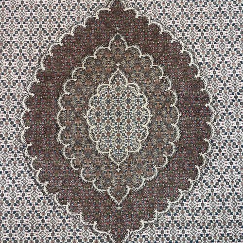 ◆手触り◆ 面で触ると短く整えられた毛足のもちもちとしたほのかな弾力があります。毛流れに沿ってなでるとさらりとした手触りです。 絨毯の上に乗れば、足裏に包み込まれるような安心感あるウールの肉感ある感触が床面の感触と共に伝わってきます。 毛足は、光の当たり具合によって淡い色合いをより美しくその表情を変えてくれます。 良品と呼べるお品ですが、あくまでも新品同様ではなくヴィンテージ品としてのグッドコンディション品とお考え下さい。 暮らしの中で年月と共に深まる風合いをお楽しみください。 *** ペルシャ絨毯には毛の流れがあり、一方向に羊毛が若干”ねている”様になっています。 大きなサイズのペルシャ絨毯になりますと、毛の流れに光が反射して、光の当たる方向によって、見え方も若干変化してまいります。 日光と共に表情を変える天然ウールの絨毯の毛並みを楽しめるのも大きなサイズならではです。