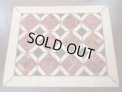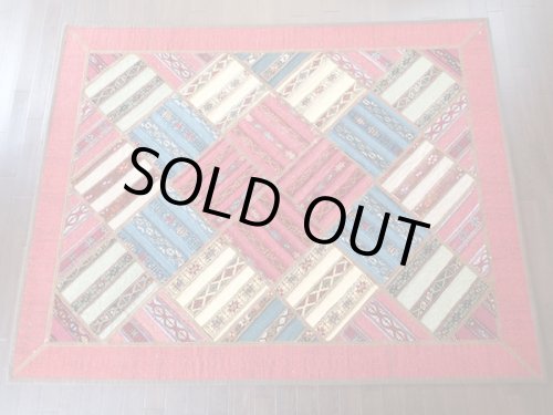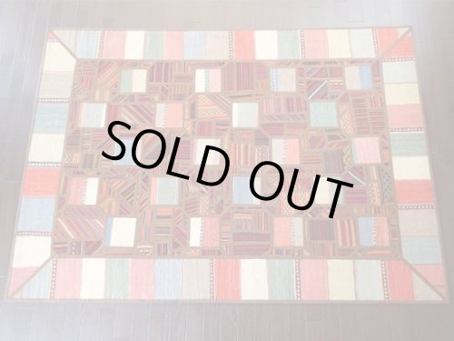 トルクメンタイプの模様のペルシャ絨毯をベースにキリム、ジャジムをランダムにパッチワークした落ち着きあるデザインの1枚です。