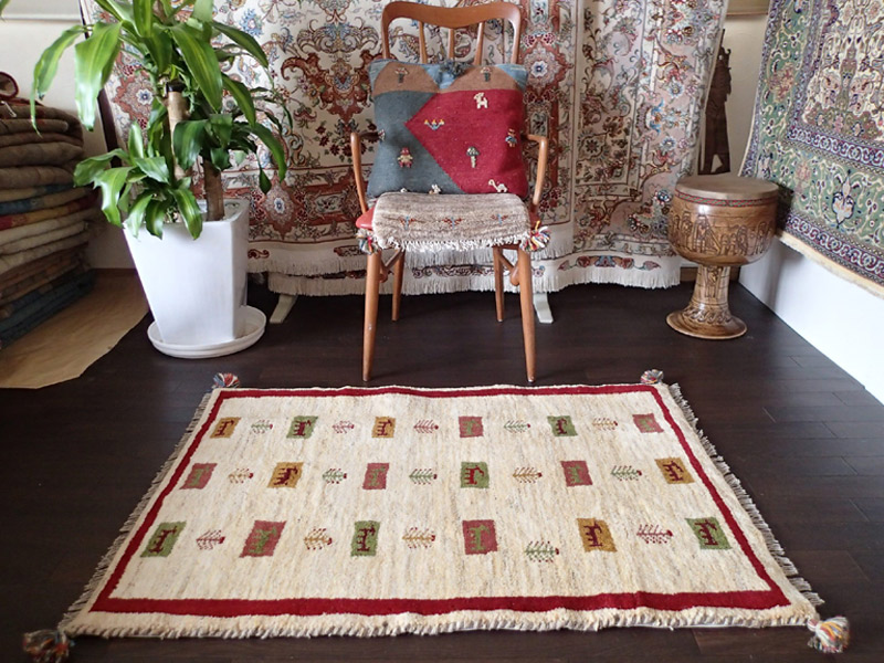 手織りペルシャギャッベE87アクセントラグサイズ118×80ハンドメイドラグ |