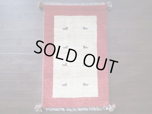 手織りペルシャギャッベE102玄関マットサイズ91x57ハンドメイドラグ