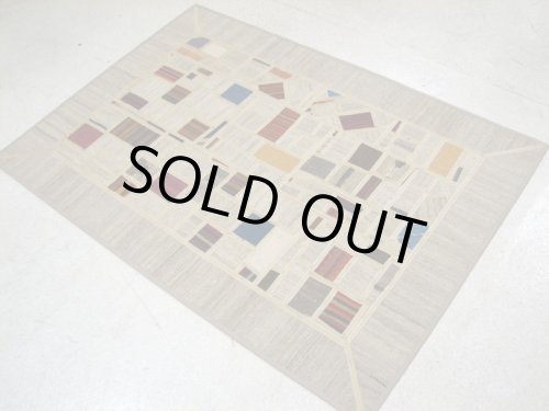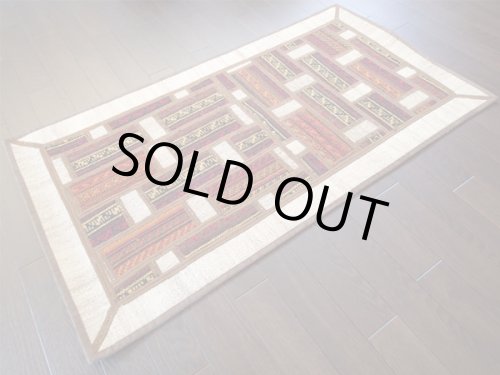 カラフルににパッチワークされたギャッベ、キリム、ジャジムをジャジムの外枠で囲む様に配置したデザインです。