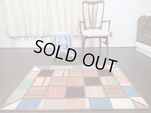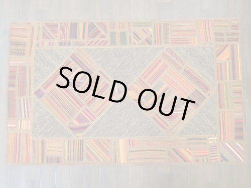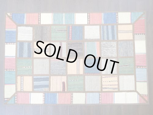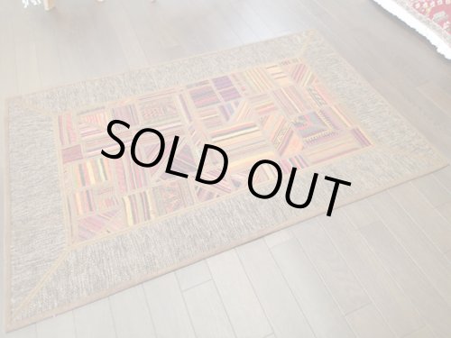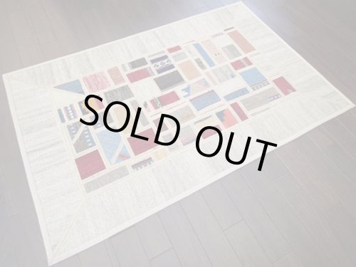イランの伝統的なハンドメイドのギャッベ、キリム、ジャジムをパッチワークアレンジした素敵なデザインのラグです。