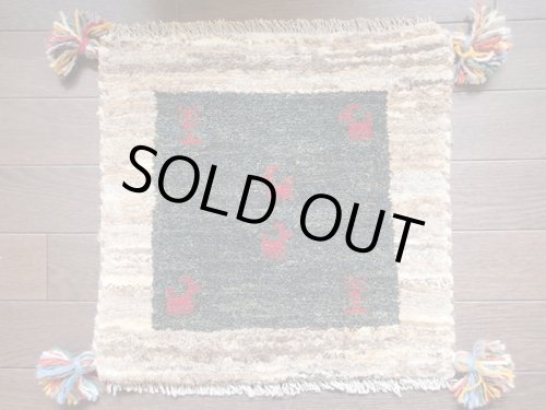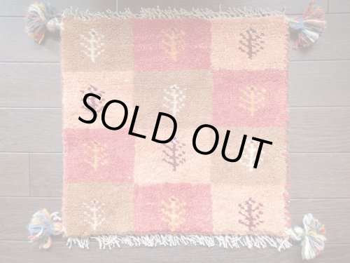 ペルシャ ミニ ギャッベ 座布団 サイズ 39 x 38 C24 ハンドメイド ラグ クッション 天然 ウール 手織り ギャベ ナチュラル 茶