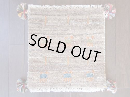ペルシャ ミニ ギャッベ 座布団 サイズ 33 × 43 C27 ハンドメイド ラグ クッション 天然 ウール 手織り ギャベ 茶 マルチ カラー