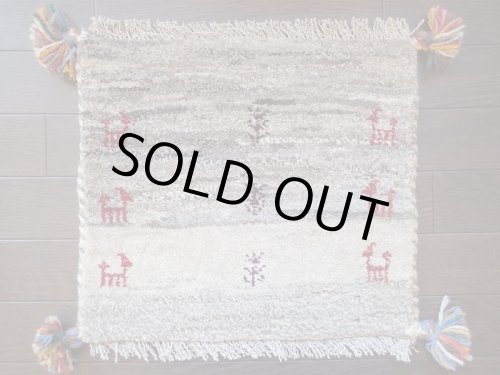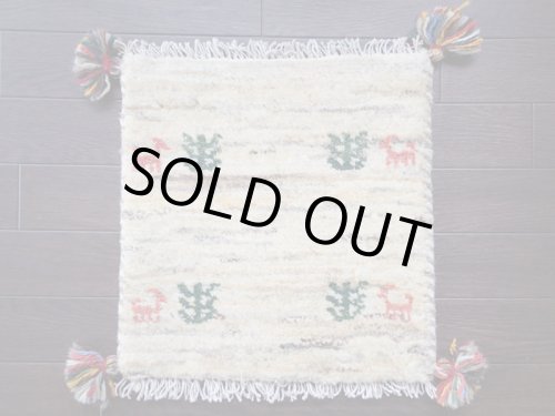【名称】手織りペルシャミニギャッベC27座布団サイズ33×43ハンドメイドラグ