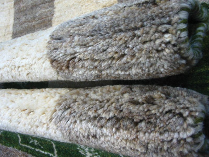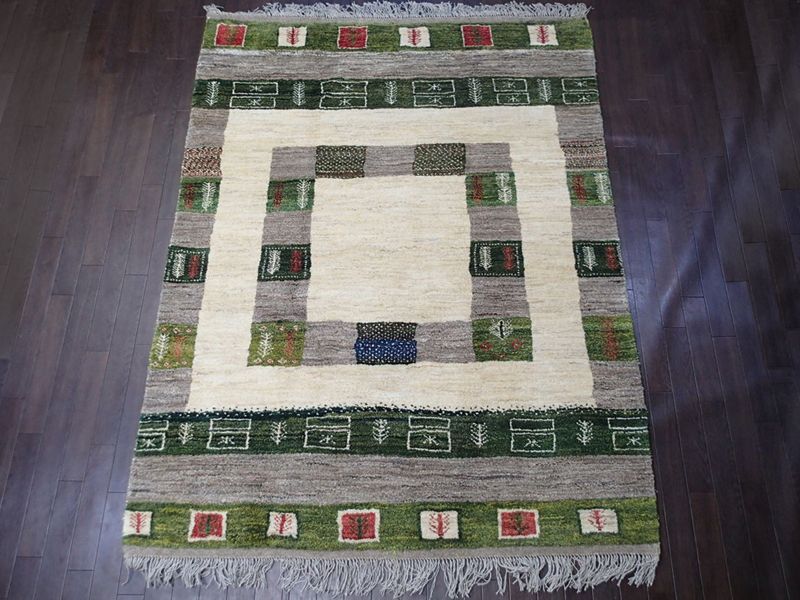 ペルシャ ギャッベ リビング サイズ 203 x 155 cm F149 ハンドメイド ギャベ 天然 ウール 手織り ラグ マット 絨毯 カーペット クリーム 緑 茶