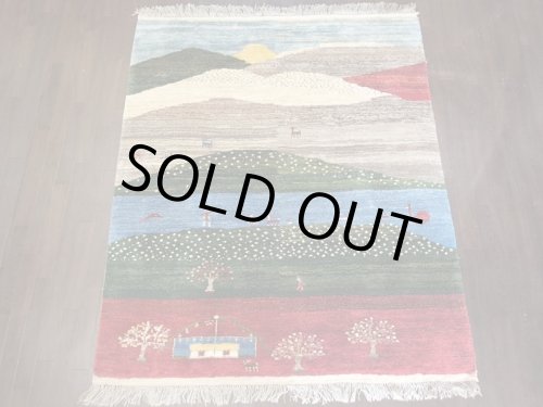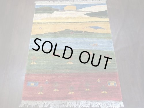 新品 ペルシャ ギャッベ リビング サイズ 193 × 150 cm No.F10 ハンドメイド 天然 ウール 手織り ラグ 絨毯 カーペット 青 赤 緑 グラデーション n-f10-193150s005