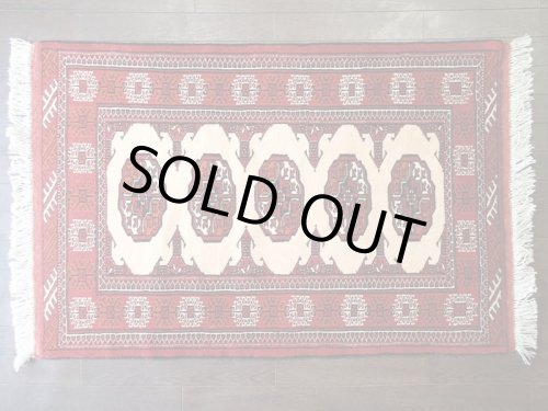 トルクメンの特徴である赤やエンジを基調にした連続する幾何学模様デザインの1枚です。