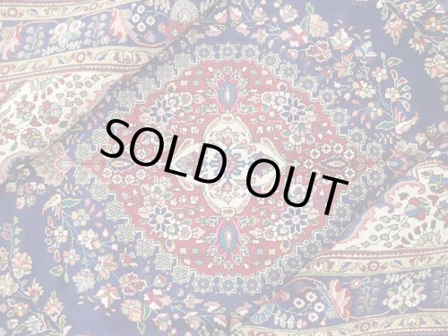 オールド ペルシャ 絨毯 タブリーズ 3m リビング ダイニング 大判 サイズ 290 x 216cm P115 手織り トライバル ラグ 天然 ウール 敷物 マット カーペット 紺 赤 メダリオン 草木 花 柄 ヴィンテージ ビンテージ OLD