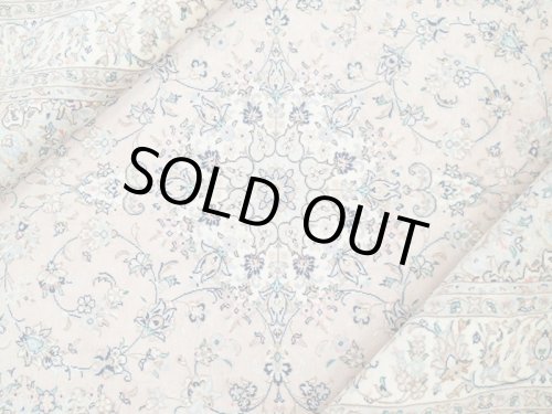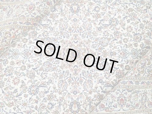 ***手触りやコンディションについて*** 20年程度の経年のお品ですが、約1.0cm程度の毛足は肉厚でやわらかくきめ細かで艶やかです、経年を感じさせない毛足の立ち上がりです。 手触りはとてもやわらかで持ち上げるとくにゃりとする薄手のやわらかな織り地でふんわりとしています。 絨毯を踏みしめた際には、床面の感触と共にふんわりと包まれるような肉厚でやわらかな毛足の感触が伝わってきます。 やわらかくも引き締まった毛足は、光の当たり具合によって淡い色合いをより美しくその表情を変えてくれます。 20年程度の経年のお品で、毛足やセルビッチ(大外の縁取り)の大きなダメージも見受けられず、フリンジのリペアがなされており、経年を感じさせない上品な印象を与える非常に状態の良い美品と言えるお品です。
