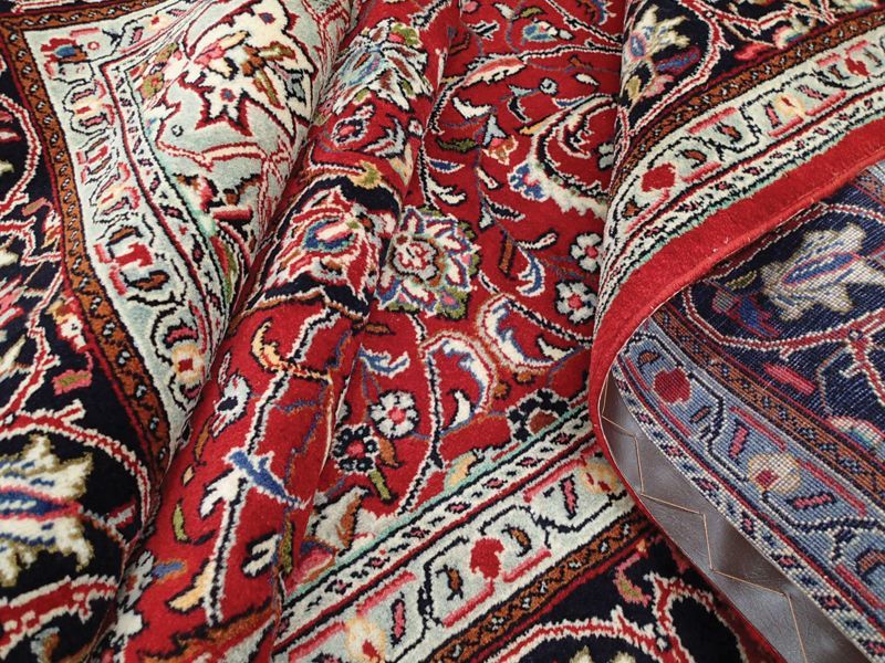 ***手触りやコンディションについて*** 毛足の状態は、肉厚でやわらかな織り地で、表地の毛並みは充実した立ち上がりを感じさせ、歩くとほんのりとふんわりもっちりとした厚みを感じさせます。 経年を感じさせない美しい毛足の手触りはふんわりとした中にも弾力があります。 非常に状態の良いパイルです。 絨毯の裏を見ると、織り込まれた編目は細かくしっかりと密に並んでおります。 しっかりとコットンのたて糸に織り詰められた毛足は短くも腰があり、密集してしっかりとした手ごたえがあります。 鮮やかな赤と淡い色合いのギャップのコントストが特徴的な絨毯ですが、毛足の発色が非常によく、きめ細かな毛足はコシがあり、艶やかで輝きがあります。 光の当たり加減によって色合いの表情を変える非常にコンディションの良いパイルです。 セルビッジもダメージもなく非常に美しい状態です。 これから2世代3世代と使用していけるお品です。 暮らしの中で年月と共に深まる風合いをお楽しみください。 *** ペルシャ絨毯には毛の流れがあり、一方向に羊毛が若干”ねている”様になっています。 大きなサイズのペルシャ絨毯になりますと、毛の流れに光が反射して、光の当たる方向によって、見え方も若干変化してまいります。 日光と共に表情を変える天然ウールの絨毯の毛並みを楽しめるのも大きなサイズならではです。 *** リビングルームの中心に、2〜3人掛けのカウチソファーの前に敷いて、テーブルも置くことのできる大きなサイズです。 ダイニングルームでテーブル下に敷いて、食卓を明るくしてくれます。 客室等、特別な空間に敷くことで絵画の様に空間を素敵な雰囲気に変えてくれます。 ペルシャ絨毯の緻密なデザインを楽しみつつ、天然ウールのやさしさをたっぷり楽しめる贅沢なサイズです。 床に絵を飾っている様に、毎日過ごすお部屋を素敵な空間にしてくれます。 お部屋のアクセントに是非どうぞ。