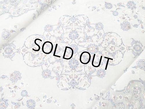 ナインの絨毯は日本の家屋ともよい相性で、日本家屋や古い和箪笥等の和の装いを纏った空間にも適しています。 味のある家具やアンティークインテリア、コーヒーテーブル等と良い相性です。 お家のフローリング、カフェ、アパレルセレクトショップやヘアサロン内装や古民家等、多くの用途にご使用いただけます。 | | ペルシャ絨毯の特性 | *** ペルシャ絨毯はオーガニック由来の染料を用いて染め上げられた羊毛を、たくさんの時間をかけて、縦糸にひとつひとつ毛足を結びつけて織り上げていきます。 ウールを紡ぐところから、全体を洗う作業、毛足の刈り込みや端の処理まで、全て手作業で行われています。 そのため、非常に多くの時間を費やして制作されます。 ペルシャ絨毯はその美しい見た目とクオリティから「敷く宝石」との呼ばれています。 また、産地によりデザインやクオリティが異なり、世界的にも多くのコレクターが存在しています。 ハンドメイドの商品ですので、多少のゆがみや大きさの違いなどはご理解いただきます様お願いします。 *** ペルシャ絨毯は寒暖の差が激しいイランで伝統的に使ってきた敷物です。 羊毛の1本1本が呼吸し、夏でも快適に過ごせます。 厚みのわりに通気性があり、ホットカーペットの上に敷いても、ほんわかと心地よい暖かさが伝わってきます。 手織りならではの一枚一枚違ったテイストをお楽しみください。 | | サイズ | 【縦】290cm × 【横】195cm※フリンジ(房)の長さは含みません。(フリンジ上7.0下9.0cm程度) 【厚み】約1.0cm程度 【ノット】二重織り(ダブルノット) 49万ノット/㎡程度 | | 手触り | ソフト | | 素材 | ウール(羊毛)・シルク(絹) | | 状態 | 【NEW】新品未使用品 ペルシャ絨毯の本場イランより直輸入しております。 ハンドメイドの商品ですので、多少のゆがみや大きさの違い、色滲みムラやスレ毛羽立ちほつれなどはご理解いただきます様お願いします。 ご利用のモニター環境によって色合いや見え方は異なります。ご了承下さいませ。 | | コンディション詳細 | ー | | 備考 | ※お部屋に敷いてからしばらくの間は、遊び毛と呼ばれる抜け毛が出てまいりますが、品質に問題はございませんのでご安心くださいませ。 数か月程度で落ち着いてまいります。 ※裏面両脇に取り付けてあります滑り止めは糸を外す事で取り外せます。 滑り止め、型崩れ防止のために取り付けされておりますが、取り外して使用していただいても問題ございません。