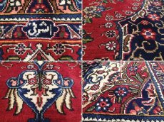 ◆全体のコンディション◆ 20年程度の経年のお品ですが、約1.0cm程度の毛足は肉厚で柔らか、経年の引き締まりを見せています。 肉厚なウールパイルですが、経年によりほどよく引き締まり、それにより毛足が良い感じに全体的に寝ていることで、見る角度や日差しによって美しく見た目を変えてくれます。 また、色合いも深みがあり、鮮やかかつまろやかな印象を与え美しく上品な印象を与えます。 絨毯の裏を見ると、織り込まれた編目はみっちりと正方形で密に並んでおります。 しっかりとした均一で密な織りです。 毛足やセルビッチ(大外の縁取り)の大きなダメージも見受けられず、状態の良いGOODコンディションのお品です。 フリンジにうっすらと色移りが見受けられますが、使用上の問題はございません。