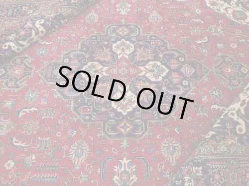 *** ペルシャ絨毯には毛の流れがあり、一方向に羊毛が若干”ねている”様になっています。 大きなサイズのペルシャ絨毯になりますと、毛の流れに光が反射して、光の当たる方向によって、見え方も若干変化してまいります。 日光と共に表情を変える天然ウールの絨毯の毛並みを楽しめるのも大きなサイズならではです。
