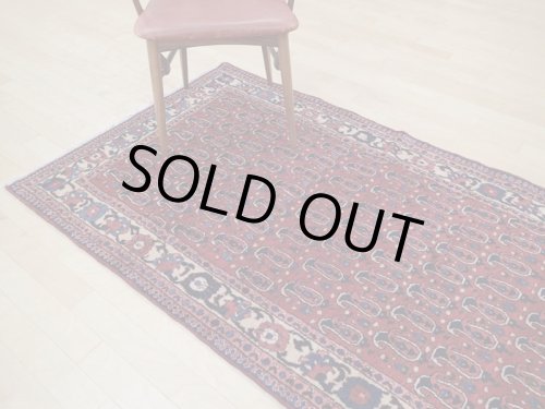 イラン・トルクメンのペルシャ絨毯です。 新品未使用のお品です。 フリンジには高級素材のしなやかなシルクを使用しており、規則性のある幾何学模様が非常に美しいデザインの1枚です。 ギュル(ゴル)という象の足とも呼ばれる特徴的な家紋をモチーフにしており、緻密に織られた幾何学模様が特徴です。 約2.5㎡・3帖程度のサイズで、リビングルームやダイニングルーム、客室等の2人掛けソファやダイニングテーブルの足元に敷くのに最適です。 寝室のベッドサイドにも良いサイズで、寝室に敷くことで1日の始まり、1日の終わりを特別な気持ちで過ごすことが出来ます。 ***デザインやカラーリングについて*** ◆全体のデザイン◆ こちらの絨毯は一つの模様を絨毯全体に規則的に並べた総柄のオーバーオールデザインです。 一つの模様を絨毯全体に規則的に並べた総柄のデザインです。 『ギュル(ゴル)』と呼ばれる幾何学的なトルクメン族の家紋模様が配されています。 ◆全体のカラーリング◆ クリーミーな生成り色のベースにエンジ色で文様が織り込まれたシンプルな配色です。 しっかりとした織りに経年によりふわふわほろほろとした手触りの毛足が、ボテの模様と色合いをより味わい深い印象としてくれています。 やわらかで味わい深い毛足の流れに日差しが当たることや、見る向きや角度によって見え方が美しく変わります。 日差し、影、部屋の電気、間接照明など、朝、昼、夜で違った顔を見せてくれるところも素晴らしいところです。 ◆各部位の説明◆ ◇フィールド◇ ギュルと呼ばれる特徴的な家紋がラグのフィールド一杯にデザインされた幾何学的で美しいデザインです。 高密度に織られたクリーミーな生成り色の織り地にエンジ色で細かく織られたギュルが連続しています。 毛羽立つ様なふわふわとした毛足にシンプルなデザインがとても良くマッチしています。 日差しや見る方向によって色合いの印象を変え、フィールドの生成り色は白っぽい色合いから深く落ち着いたクリーム色へ変化します。 差し色のエンジも、角度によって明るい赤〜色の濃い暗い茶色がかった赤に見える印象が変わる美しいデザインです。