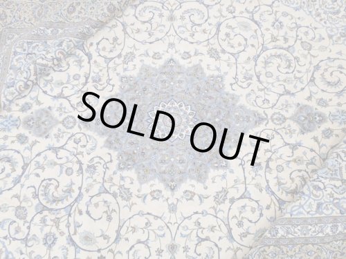 ◆手触り◆ 手触りは1本1本の毛足がふわりとしており、面で触るともっちりとやわらかでふかふかとした弾力があり、みっしりとした毛足の流れに沿ってなでるとさらりとした手触りです。 非常にやわらかな毛足で、経年を感じさせない毛足の良質さが感じられます。 持ち上げるとくにゃりとするやわらかさですが、歩いたり、腰を下ろした際には、ふんわりもっちりとした厚みを感じさせ弾力あるやわらかな毛足の感触が床面の感触と共に伝ってきます。 暮らしの中で年月と共に深まる風合いをお楽しみください。 *** ペルシャ絨毯には毛の流れがあり、一方向に羊毛が若干”ねている”様になっています。 大きなサイズのペルシャ絨毯になりますと、毛の流れに光が反射して、光の当たる方向によって、見え方も若干変化してまいります。 日光と共に表情を変える天然ウールの絨毯の毛並みを楽しめるのも大きなサイズならではです。