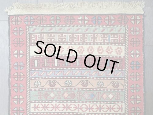新品 ペルシャ キリム グーチャン 1m 玄関 マット サイズ 100 x 52 cm 145 スマック 手織り トライバル ラグ 天然 ウール マット 絨毯 カーペット カラフル ラフラ ボーダー テーブルカバー 収納棚 ラックの彩りに n-145-100052a08