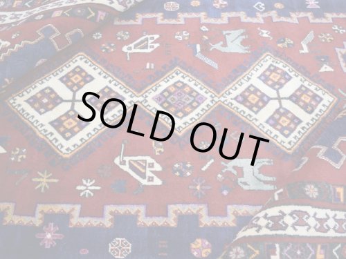 現在シールジャーンでは、スマックキリムの生産がほぼ全てを占めており、毛足のある絨毯類は生産していません。 2017年、ケルマーン州シールジャーンのキリム織りがユネスコの無形文化遺産に登録されました。 絨毯類は、シラーズの遊牧民部族絨毯を彷彿させるデザインのものが多く動物などのモチーフや連続するメダリオンを多用した素敵なデザインとしっかりとした織りが特徴です。 イラン絨毯関連の無形文化遺産登録はタブリーズ、カーシャーン、ファールスに次いでのこととなります。 | | 説明 | イラン・シールジャーンのビンテージ部族絨毯(トライバルラグ)です。 シールジャーンでは現在キリムの生産がほぼ全てを占めており、毛足のある絨毯類は生産がおこなわれていない希少な絨毯です。 新品未使用のお品です。