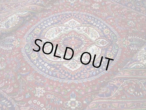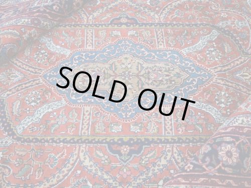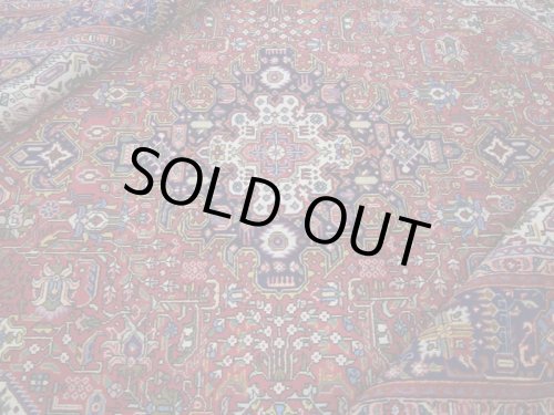 【状態は、、、】 タブリーズの良質なウールを使用して織りあげられた絨毯です。 経年20年程度のビンテージ品ですが、状態の良い毛足です。 クリアな発色に経年によりややまろやかさを帯びた美しい色合いです。 全体的にまろやかな印象を与える経年の色合いの落ち着き見られますが、美しい味わいとして感じられ、それにより毛足がくたびれてカスレやダメージとなっている様な印象は与えません。 キメ細かく毛足は均一に整っており、毛流れにぺたりと寝て、絨毯の色合いや模様を一層美しい印象として引き立てています。 センターテーブル等を置いても非常に安定するしっかりとした織り地です。 毛足やセルビッチ(大外の縁取り)の大きなダメージも見受けられず、状態の良いGOODコンディションのお品です。 全体的な状態が良いGOODコンディションのヴィンテージ品で、大きなスレ等のダメージもなく、本場イランでのクリーニングを経て気持ちよくお使いいただけます。 -------- 【サイズ感は、、、】 約6.2㎡・〜6帖程度のサイズ感で、大判の絨毯はリビング・ダイニングルームや客室の中心に、2〜3人掛けソファやコーナーソファの足元に敷いてお部屋をくつろぎの空間に変えてくれます。。。 ホテルや旅館、ペンション等のお客様をおもてなしする場にも相応しい大きなサイズと良質な毛足、上品な美しさを兼ね備えた1枚です。 良いラグはあなたの空間を特別なものに変えてくれます。 -------- ***デザインやカラーリングについて*** ◆全体のデザイン◆ クム、イスファハーン、ナイン、タブリーズと並ぶペルシャ絨毯の5大生産地として知られているカシャーン産の絨毯は、全体に所狭しとアラベスク模様の花々が美しく咲き乱れるデザインが主流です。 こちらの絨毯は中央にメダリオンを配した『トランジ』デザインです。 中央にメダリオンをフィールドの四隅にコーナーメダリオンを配していることから『メダリオンコーナー』デザインとも呼ばれます。 バラやユリの断面をデザインしたシャーアッバス模様をあしらった花や樹木を扱った花柄のアラベスク調の王道デザインですが、まるでデジタルのフィルターを通した様に幾何学的なテイストで細かなメダリオン等も加えられてデザインされています。 中央にダイナミックにトランジメダリオンを配置したデザインで、フィールドを埋めつくす様に沢山の草木や花々が所狭しと躍動する様です。 草木や花々だけでなく各所に小さなメダリオンなども配されていて、見ていて飽きの来ない、見ていると様々な発見のある素敵な絨毯です。 ◆全体のカラーリング◆ クリアな発色に経年によりややまろやかさを帯びた美しい色合いです。 暖色系の色合いがベースカラーとなっています。 メダリオンやボーダーにはエンジの色合いが使用されています。 フィールドにはくすんだサーモンピンク系の色合いが使用され経年のまろやかな色合いが優しい印象を与えます。 まろやかな色合いの毛足が全体の直線的なデザインを際立てます。 絨毯全体に配された花々や草木やメダリオン等の細かな装飾には黄やピンク、グリーン、オリーブ等の色合いが使用されています。 どれも目に痛い様な色ではなく落ち着いた印象を与えます。 全体的にカラフルですが、統一された色合いを使用し絨毯に落ち着きを与えています。 キメ細かくふわりとした柔らかなウールにまろやかな色合いが染色され、そこに経年の色合い変化や引き締まりを見せた毛足が、やさしくクリーミーな色合いの印象を与えています。