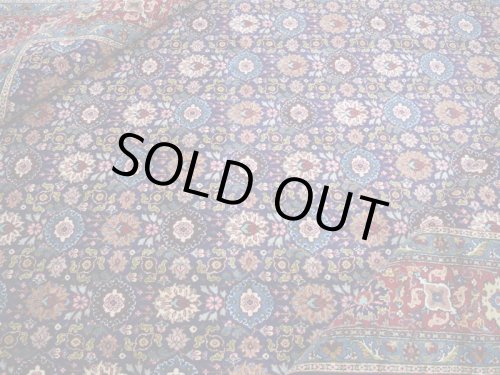 ***手触りやコンディションについて*** ◆全体のコンディション◆ 20年程度の経年のお品ですが、ふわふわとした毛足はキメ細かくみっしりと詰まって均一で、毛足の流れ方向にぺたりと寝ています。 約1.0cm程度の毛足は、しっかりと引き締まった織り地のベースで、1本1本がふわりと柔らかな毛足を携えて捲れにくく安定感があります。 持ち上げるとずっしりとした織り地の重量感があります。 絨毯の裏を見ると、織り込まれた編目はみっちりと正方形で密に並んでおります。 しっかりとした均一で密な織りです。 フリンジもしっかりとメンテナンスがなされています。 毛足やセルビッチ(大外の縁取り)の大きなダメージも見受けられず、状態の良い美品です。 左ボーダーにやや毛足の短い部分があり、数か所のリペアがございますが使用に問題はございません。