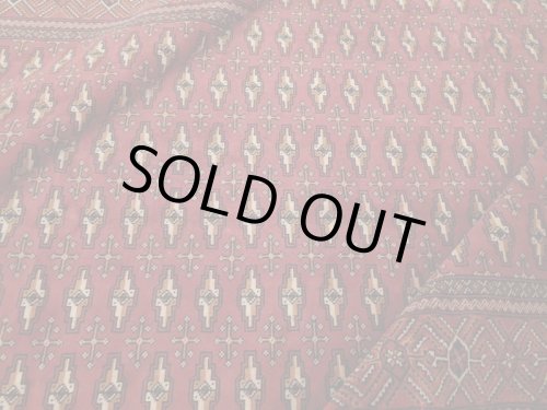 ***手触りやコンディションについて*** ◆全体のコンディション◆ 30年程度の経年のお品ですが、ふわふわとしたやわらかい毛足はキメ細かく均一な印象で、毛足の流れ方向にぺたりと寝ています。 織の性質としてぺたりと寝いて、くたびれて寝ている印象ではありません。 約0.8cm程度の毛足は、持ち上げるとくにゃりとする柔らかな織り地です。 絨毯の裏を見ると、シングルノットで織られていて織り込まれた編目は密に並んでいます。 均一で密な織りです。 毛足やセルビッチ(大外の縁取り)の大きなダメージも見受けられず、状態の良い美品です。 やや毛足の不均一な部分がありますが、気になる程度ではなく、使用に問題はございません。