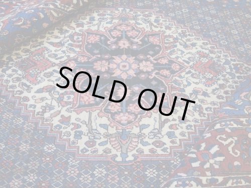 ◆手触り◆ 面で触ると毛足のもちもちとしたほのかな弾力があります。毛流れに沿ってなでるとウールのふわりとした手触りです。 絨毯の上に乗れば、足裏に包み込まれるような安心感あるウールの肉感ある感触が床面の感触と共に伝わってきます。 毛足は、光の当たり具合によって淡い色合いをより美しくその表情を変えてくれます。 良品と呼べるお品ですが、あくまでも新品同様ではなくヴィンテージ品としてのグッドコンディション品とお考え下さい。 暮らしの中で年月と共に深まる風合いをお楽しみください。 *** ペルシャ絨毯には毛の流れがあり、一方向に羊毛が若干”ねている”様になっています。 大きなサイズのペルシャ絨毯になりますと、毛の流れに光が反射して、光の当たる方向によって、見え方も若干変化してまいります。 日光と共に表情を変える天然ウールの絨毯の毛並みを楽しめるのも大きなサイズならではです。