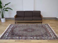 *** ペルシャ絨毯には毛の流れがあり、一方向に羊毛が若干”ねている”様になっています。 大きなサイズのペルシャ絨毯になりますと、毛の流れに光が反射して、光の当たる方向によって、見え方も若干変化してまいります。 日光と共に表情を変える天然ウールの絨毯の毛並みを楽しめるのも大きなサイズならではです。 *** リビングルームの中心に、2〜3人掛けのカウチソファーの足元に敷くことのできるサイズです。 大きなお宅では玄関に敷いて、ご自宅の入り口を明るい印象にしてくれます。 客室等、特別な空間に敷くことで絵画の様に空間を素敵な雰囲気に変えてくれます。 ペルシャ絨毯の緻密なデザインを楽しみつつ、天然ウールのやさしさをたっぷり楽しめるサイズです。 床に絵を飾っている様に、毎日過ごすお部屋を素敵な空間にしてくれます。 お部屋のアクセントに是非どうぞ。 日本の家屋ともよい相性で、日本家屋や古い和箪笥等の和の装いを纏った空間にも適しています。 味のある家具やアンティークインテリア、コーヒーテーブル等と良い相性です。 お家のフローリング、カフェ、アパレルセレクトショップやヘアサロン内装や古民家等、多くの用途にご使用いただけます。