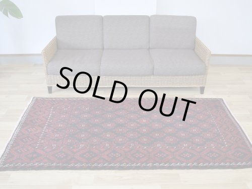 イランで作られたビンテージのトルクメン 手織りペルシャ部族絨毯です。 トルクメンならではのギュルと呼ばれる家紋を配した総柄デザインです。 やや使用感は感じますが、みっしりと詰まった肉厚な毛足の良品と呼べるコンディションです。 イラン本国での専門業者によるクリーニングメンテナンスを経て、日本へ輸入しております。 --------