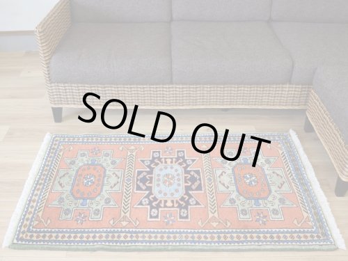 お部屋のアクセントとして、または玄関マットにも使えるサイズです。 ベットサイド、椅子やソファーの足元にもおススメです。 あたたかみのあるハンドメイドの絨毯が、床に絵を飾っている様に、毎日過ごすお部屋を素敵な空間にしてくれます。 あなたのお部屋のアクセントにどうぞ。