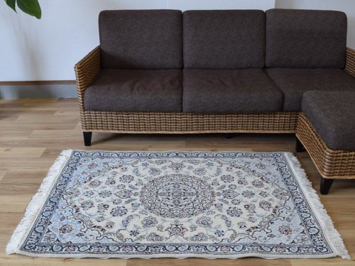 ◆手触り◆ 1本1本のきめ細かな毛足がとてもやわらかで、ふんわりとした手触りですが、密集した毛足の為、低反発感を感じるコシのある弾力感を感じます。 踏みしめた際には足の裏にやわらかで、もっちりとした感触が接した部分を包み込むようで、床面の感触と共に絨毯のやわらかさが伝わってきます。 薄手な絨毯ですが、肉感を感じる高品質な1枚です。 光の当たり具合によって淡い色合いをより美しくその表情を変えてくれます。 暮らしの中で年月と共に深まる風合いをお楽しみください。 *** ペルシャ絨毯には毛の流れがあり、一方向に羊毛が若干”ねている”様になっています。 大きなサイズのペルシャ絨毯になりますと、毛の流れに光が反射して、光の当たる方向によって、見え方も若干変化してまいります。 日光と共に表情を変える天然ウールの絨毯の毛並みを楽しめるのも大きなサイズならではです。 *** リビングルームの中心に、2人掛けのカウチソファーの足元に敷くことのできるサイズです。 大きなお宅では玄関に敷いて、ご自宅の入り口を明るい印象にしてくれます。 客室等、特別な空間に敷くことで絵画の様に空間を素敵な雰囲気に変えてくれます。 ペルシャ絨毯の緻密なデザインを楽しみつつ、天然ウールのやさしさをたっぷり楽しめるサイズです。 床に絵を飾っている様に、毎日過ごすお部屋を素敵な空間にしてくれます。 お部屋のアクセントに是非どうぞ。