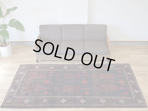 イランで作られたビンテージのバルーチ族の手織りペルシャ部族絨毯です。 バルーチならではの赤とダークな色合いのコントラストが幾何学模様がとてもよくマッチしています。 クリアながらも目に痛くない風合いあるまろやかな色合い、みっしりと詰まって密集した肉感のあるやや毛羽立つ様な豊富な毛足の良品と呼べるコンディションです。 イラン本国での専門業者によるクリーニングメンテナンスを経て、日本へ輸入しております。 --------