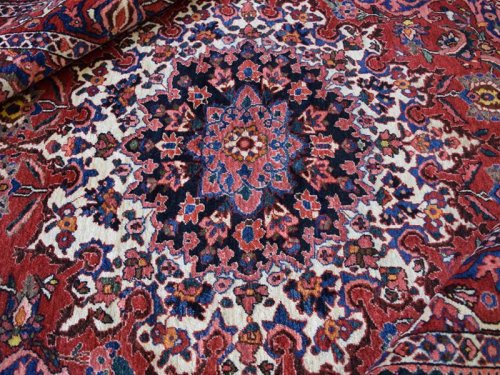◆手触り◆ 手触りは1本1本がふわりとした柔らかなウール毛足で、みっしりとした毛足の流れに沿ってなでるとさらりとした感触と豊富なふわふわとした毛足を楽しむことが出来る手触りです。 絨毯を踏みしめた際には、ふわりと立ち上がった毛足のもちもちとした低反発感のある弾力が床面の感触と共に伝ってきます。 キメ細かく密に詰まった毛足は、光の当たり具合によって淡い色合いをより美しくその表情を変えてくれます。 美品と呼べるお品ですが、あくまでも新品同様ではなくヴィンテージ品としてのグッドコンディション品とお考え下さい。 暮らしの中で年月と共に深まる風合いをお楽しみください。 *** ペルシャ絨毯には毛の流れがあり、一方向に羊毛が若干”ねている”様になっています。 大きなサイズのペルシャ絨毯になりますと、毛の流れに光が反射して、光の当たる方向によって、見え方も若干変化してまいります。 日光と共に表情を変える天然ウールの絨毯の毛並みを楽しめるのも大きなサイズならではです。