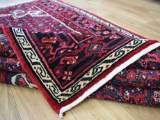 イラン・ハマダン産のビンテージ部族絨毯(トライバルラグ)です。 経年20年〜30年程度のお品で肉厚な毛足の良品〜美品と呼べる品物を、イラン本国にて専門業者によるクリーニング・メンテナンスを経て仕入れしてまいりました。