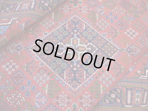 -------- ***デザインやカラーリングについて*** ◆全体のデザイン◆ 絨毯の中央には、小ぶりな3連のトランジ(メダリオン)を中心に挟む様に、4連のトランジが連なって配置されています。 カシュガイの絨毯にもみられる小ぶりでカギ型の縁取りを持ったトランジで、各メダリオンにはフィールドにも描かれたポップな印象の花模様がデザインされています。 フィールドは多少の余白を残しながら、カラフルな色合いで描かれたポップな花模様が散りばめられています。 コーナーメダリオンはグレー原毛系のウールがベースとなっています。 ボーダーに沿って絨毯を縁取っています。ボーダーでは、フィールドとはまた違った印象のメダリオンが連なります。色合いにも統一感があるのでカラフルな色合いも落ち着きを感じます。