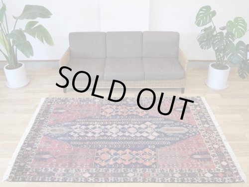 イラン・シラーズの新品未使用の部族絨毯(トライバルラグ)です。 柔らかな毛足が立ち上がり、ふかふかとした手触りの絨毯です。長い毛足で、ギャッベをお好みの方にもお勧めです。 -------- 【見た目に、、、】 ふかふかとした毛が立ち上がり、見た目にも肉厚です。 柔らかな毛足が密集するふかふかとした印象で、見た目にも豊富な毛足の並ぶ肉感があります。 ふわりとキメ細かく密に立ち上がった毛足の表面は散りばめられた細かな模様の美しさを際立てます。 近めにマットな、遠目にツヤ感を感じる毛足です。 -------- 【触り心地は、、、】 ウールパイルの1本1本がみっしりと詰まって互いを支え合い、ふわふわとした毛足が密集してコシのあるやわらかな低反発感のある手触りです。 1本1本がふわふわとした毛足が互いを支え合う様に密に並び、均一な立ち上がりを見せています。 面で触るとウールに沈み込み、ふかふかとした柔らかな毛足のもちもちとした低反発感ある弾力としっかりとしたコシのある触り心地で、やわらかな毛足に包みこまれる様です。 絨毯を足で踏みしめたり腰かけた際には、ふかふかとした弾力あるパイルに沈む感触を味わうことのできる1枚です。 密に詰まって均一に立ち上がった毛足を毛流れ方向に沿って撫でるとふわふわとしたウールの柔らかな手触り。 持ち上げるとくにゃりとする柔らかな織地にふわりとやわらかな毛足を携えています。 暮らしの中で年月と共に深まる風合いをお楽しみください。 -------- 【状態詳細は、、、】 絨毯全体の毛足は、ふわりとした羊毛の1本1本が細かく織られ、みっしりと密集して互いを支え合う様に均一な立ち上がりを見せています。 ギャベを彷彿させるやや長めの毛足はふわふわとしています。 にふかふかとした毛足がやや毛流れに寝る様にみっしりと並びます。 タクトバフトの柔らかな織地に並んだ毛足は2.0m程度と肉厚で、密に織られた毛足は、見た目にもみっしりと毛足の詰まった肉感があります。 しっかりとした織り地のベースの絨毯の裏を見ると、織り込まれた編目は均一でみっちりと密に並んで、上に物を置いても安定する織り地です。 ウールに染められた優しい色合いとカラフルなデザインに彩られた毛足は、光の当たり具合によって鮮やかな色合いをより美しくその表情を変えてくれます。 フリンジや表地ウールパイルに染料のニジミがございますが、使用に問題はございません。 新品未使用のギャッベで、あなたの暮らしの営みと共に時間を歩む事の出来る、これから長くご使用いただけるお品です。 -------- 【サイズ感は、、、】 約4.5㎡・2-3帖程度のサイズで、リビングルームやダイニングルーム、客室等の2〜3人掛けソファやダイニングテーブルの足元、寝室のベッドサイドに敷くのに最適です。 中心にローテーブルを置いても大人がゆったりと座れます。 テーブルの足元、音楽部屋や趣味の空間にもいいですね。 良いラグはあなたの空間を特別なものに変えてくれます。