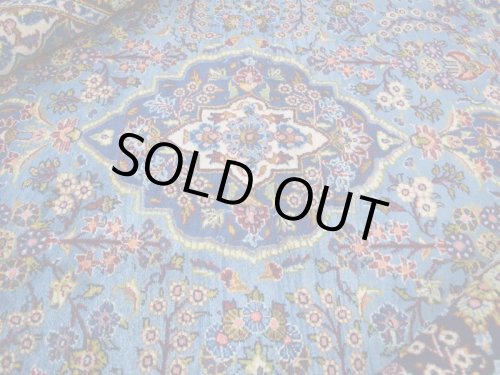 イラン・カシャーンで作られた細かな織りの新品未使用・ペルシャ絨毯です。 イランの5大絨毯産地の一つカシャーンで、良質な羊毛を紡いで丁寧に織り上げた美しいウール手織りペルシャ絨毯です。 クム、イスファハーン、ナイン、タブリーズと並ぶペルシャ絨毯の5大生産地として知られているカシャーン産の絨毯は、全体に所狭しとアラベスク模様の花々が美しく咲き乱れるデザインが主流です。
